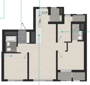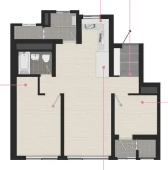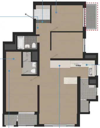 - 호반 써밋 개봉 59A : 판상형 구조로 방 세개에 화장실 두 개로 설계됨. 하지만 방 하나는 드레스룸 수준이고 방 두 개는 활용가능, 2~3인 가족에게 적합