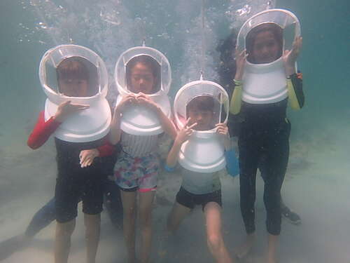 씨워킹 : 머리에 공기가 들어오는 장비를 착용하고 바닷속 체험을 하는 건데요. 막상 엄청 재미있을 것 같지만 기압 때문에 귀가 좀 아프고 물이 맑지 않아서 앞이 잘 보이지도 않고 별로인 체험이었습니다. 제 아들도 별로 재미없었다고 하는군요.
