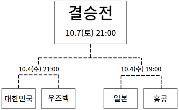 다음 상대는 바로 사우디를 2:1로 꺽은 우즈베키스탄 (우즈벡) 팀입니다. 10월 4일 저녁 9시에 예정된 준결승 경기에서 대한민국과 우즈벡이 맞붙게 될 것입니다. 이 경기에서도 대한민국 대표팀이 필승할 수 있을거라 믿습니다.